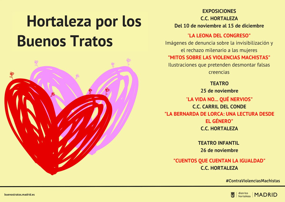 Dentro de la campaña del Ayuntamiento “Hortaleza por los buenos tratos”, el 26 de noviembre a las 12 horas, en el Centro Cultural Hortaleza (Sta. Virgilia, 15), los niños y las niñas escucharán divertidas revisiones de los cuentos tradicionales en los que las princesas tienenun papel activo.