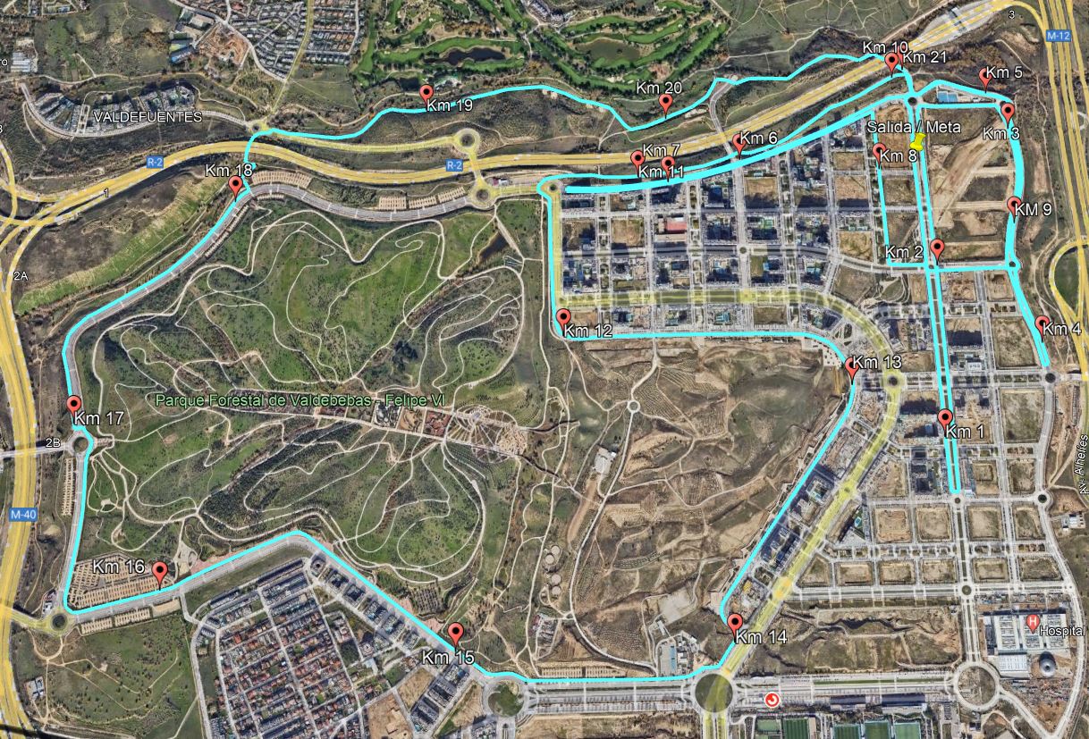 El trazado discurre por las calles de los distritos de Hortaleza (barrio de Valdebebas) y Barajas. La meta será en el mismo lugar que la salida. El perfil de los recorridos es de un nivel medio de dureza