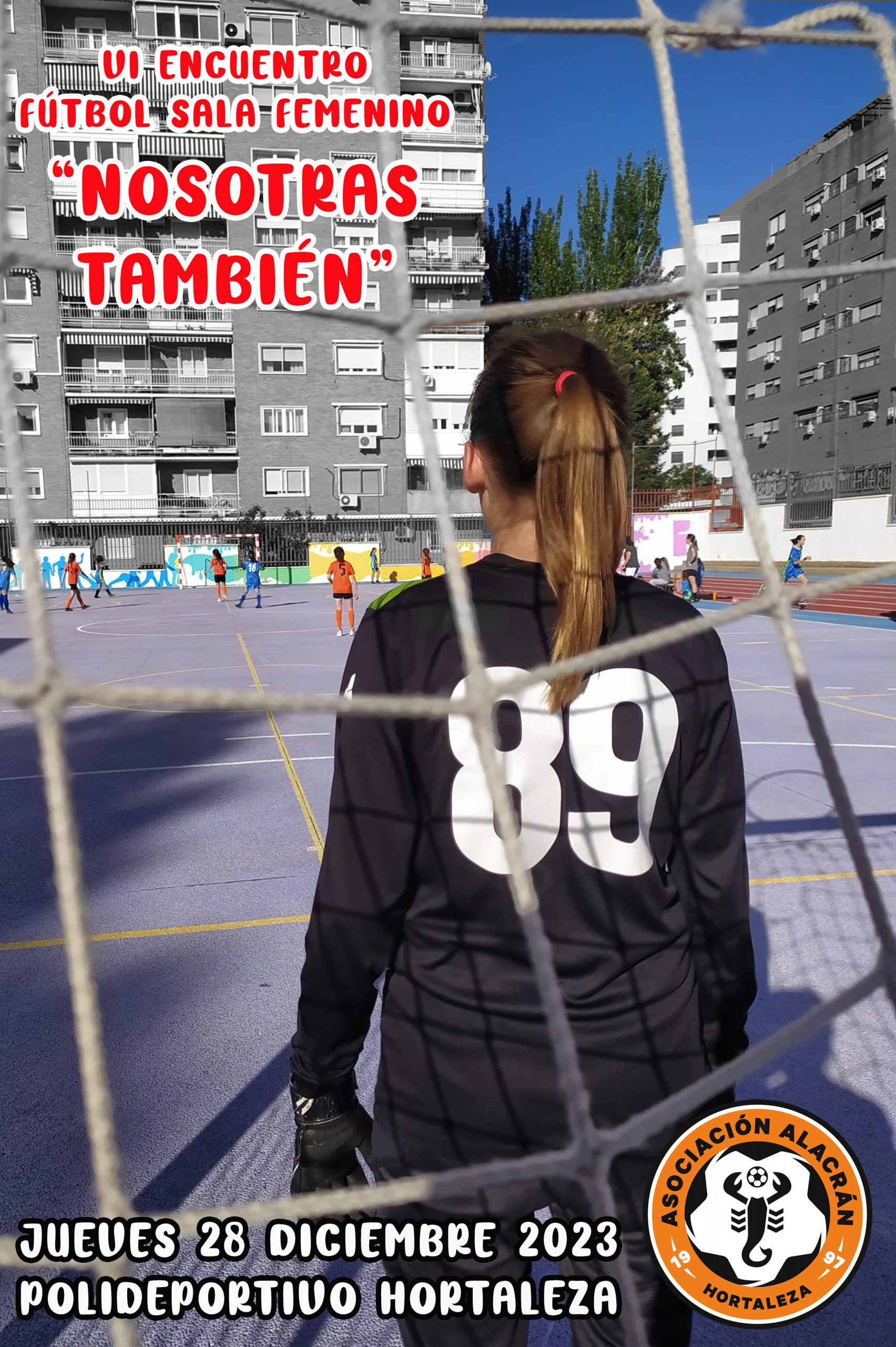 El jueves 28 de diciembre, desde las 10.00 hasta las 20.00 horas, la asociación Alacrán 1997 celebra la sexta edición del torneo de fútbol sala femenino Nosotras También en las instalaciones del centro deportivo municipal Hortaleza (Carretera Estación de Hortaleza, 11).