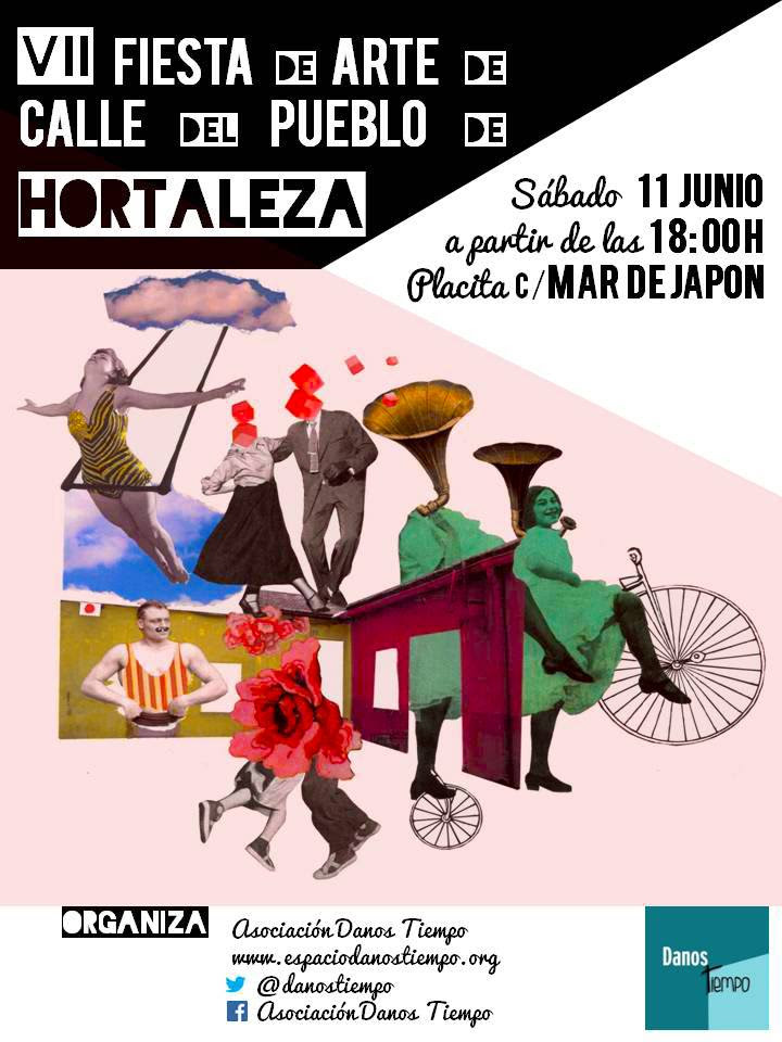 El sábado 11 de junio, en la placita de la calle Mar del Japón (en la calle de la asociación Danos Tiempo), tendrá lugar la VII Fiesta de Arte de Calle del Pueblo de Hortaleza, no os lo perdáis porque será un evento único e inolvidable. Además de una estupenda programación de actividades, como todos los años, habrá una barra y los tradicionales puestos de artesanía.