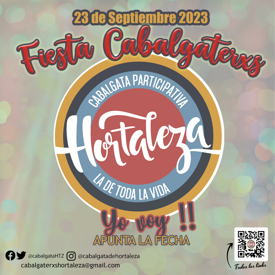 Las redes sociales de la coordinadora de la Cabalgata Participativa de Hortaleza vienen anunciando desde antes del verano la fiesta con un “Yo voy” en boca de vecinos y vecinas que sigue vigente. Además, mantiene en pie su campaña “¿Nos cuentas tu historia cabalgatera con imágenes?”, en la que solicitan fotos y vídeos justo para la exposición de la fiesta o para un documental. Todavía estás a tiempo de colaborar (el correo electrónico para envíos es hemeroteca.cabalgaterxs@gmail.com), y al parecer no te puedes perder lo del 23 de septiembre: Yo voy.