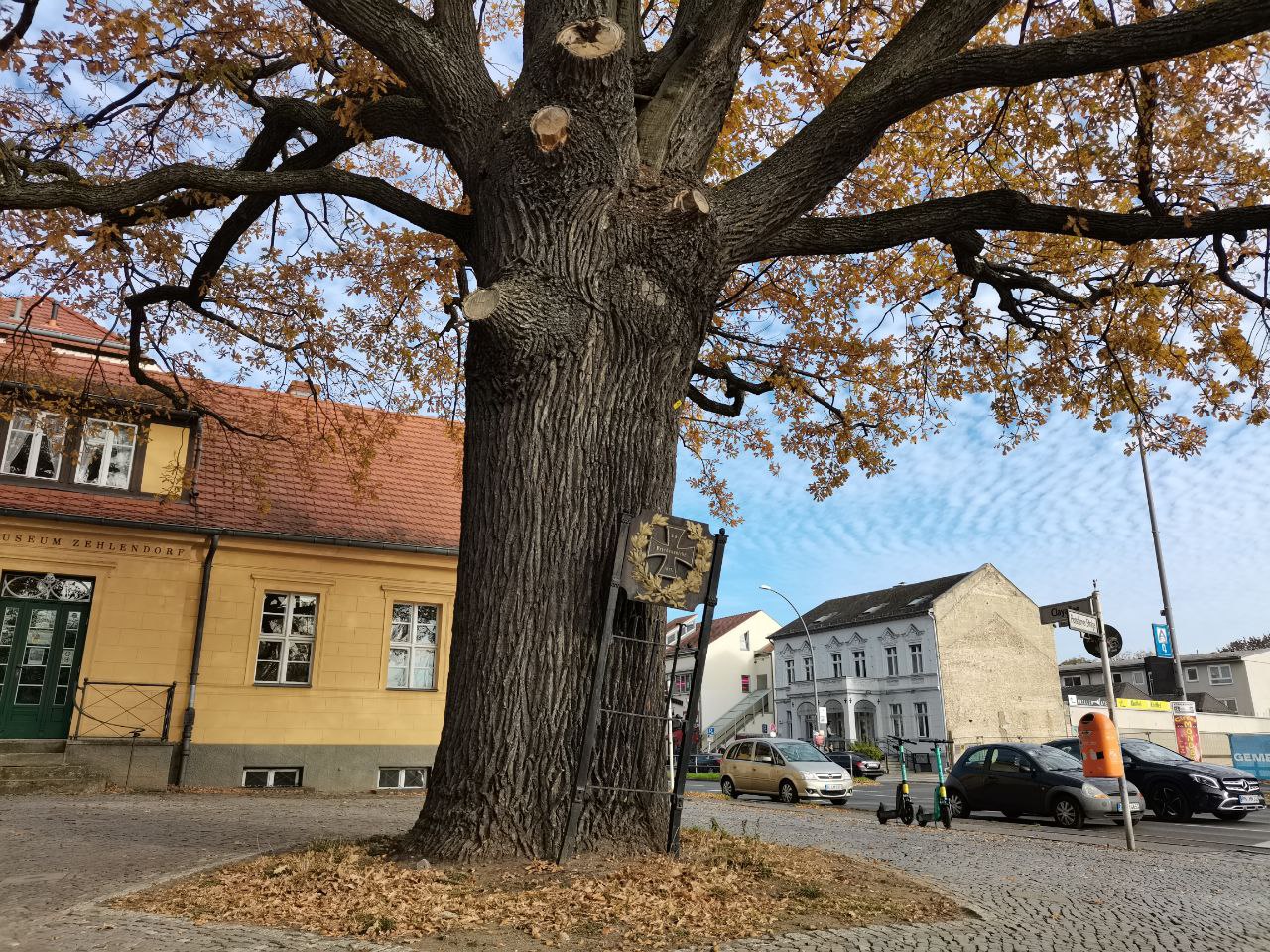 En la rotonda de Zehlendorf Eiche, la silueta de un roble centenario se recorta contra el cielo otoñal. Lo plantó en 1871 un grupo de estudiantes del distrito para conmemorar el fin de la guerra francoalemana aquel año. Sigue en pie, cuidado, vigoroso, impasible, prestando rumor o silencio a quienes quieran acercarse a su tronco.