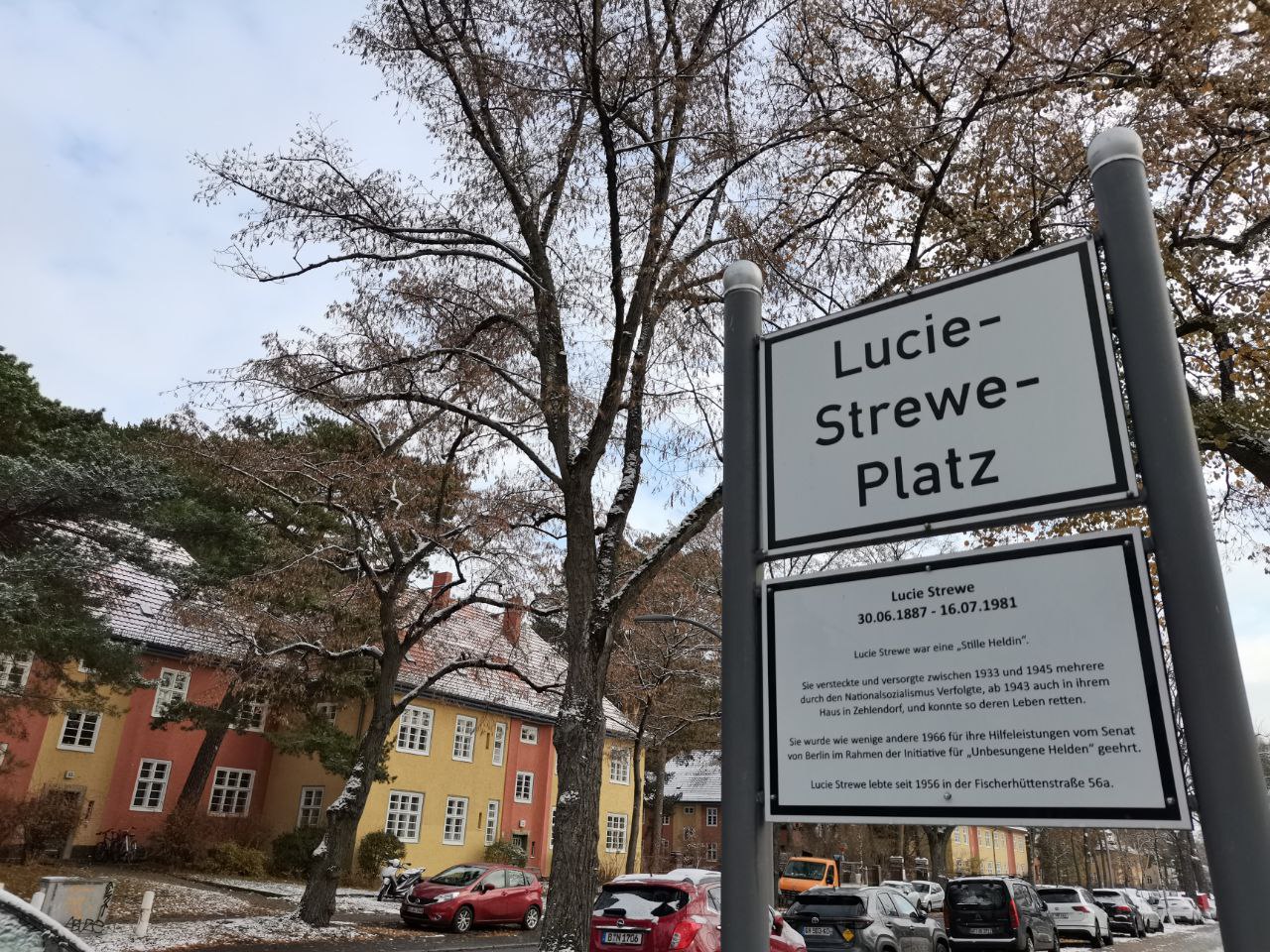 Cerca de Zehlendorf Eiche, la plaza de Lucie Strewe parece una isla en el tiempo tras las primeras nieves del otoño tardío. Desde 2018, un cartel impoluto recuerda al caminante que en una de las casas apacibles que jalonan la calle, una “heroína silenciosa” arriesgó su vida para prestar refugio y ayuda a judíos perseguidos durante el nazismo. En Hortaleza, dos carteles recuerdan las vidas de Josefa Arquero y Miguela del Burgo.
