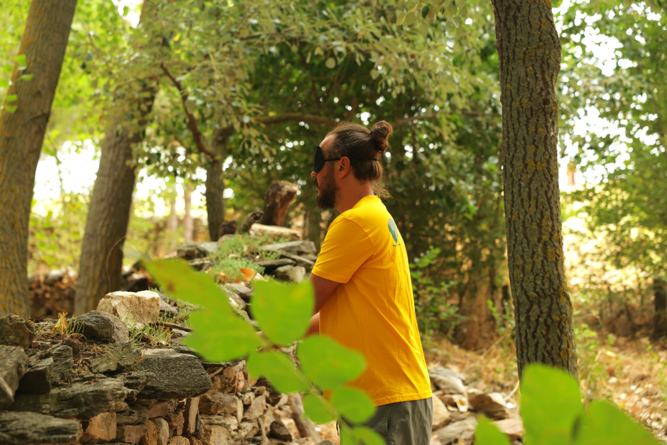 Miembro de la compañía griega SMouth en una de las actividades de ImproLANDS entre los artistas en la naturaleza. KARLOS TARAJANO