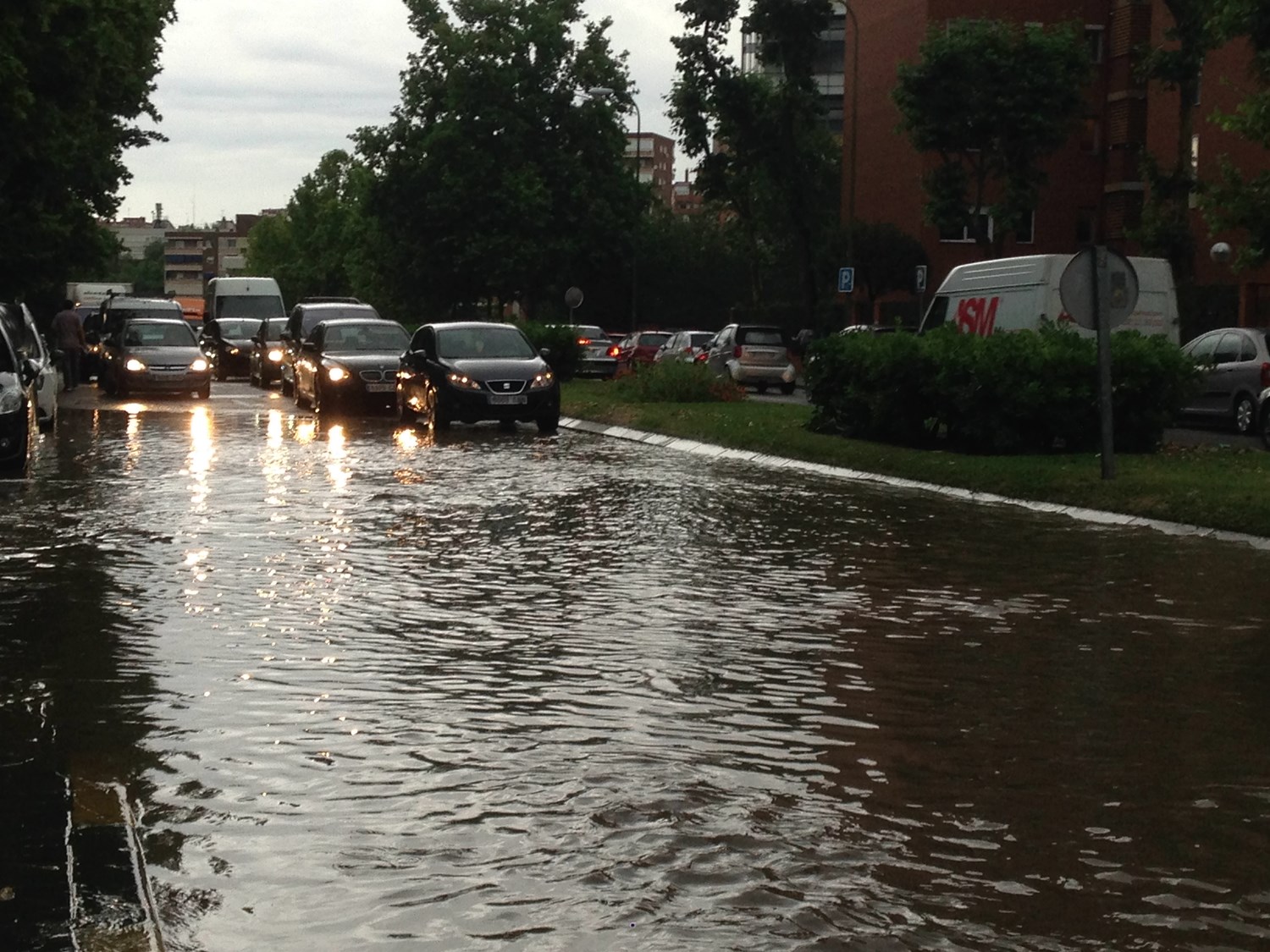 Las zonas del distrito situadas a menor altura también han quedado anegadas por el chaparrón. En la M-40, el tramo entre las salidas de la Gran Vía de Hortaleza y Silvano se transformaba en un canal tras la rotura de una tubería, provocando un enorme atasco en la vía de circunvalación. En la misma calle Silvano, varios coches han quedado atrapados a la altura del Liceo Francés, informa José Hermógenes, y los conductores han tenido que ser evacuados por agentes de la Policía Nacional.