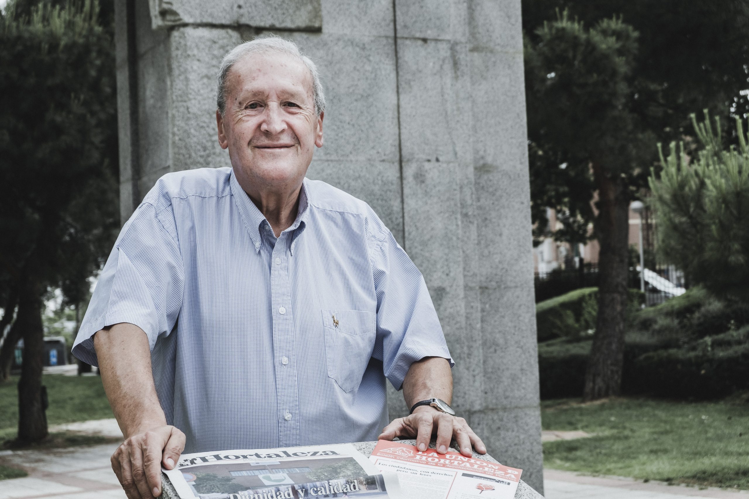 Accede, pero nos movemos al local que la asociación vecinal La Unión de Hortaleza tiene en la calle Mar Menor, un espacio que él ganó a la constructora El Triángulo para los vecinos. Dos horas son poco para destapar sus secretos y luchas. Además, él me prohíbe contar ciertos datos que otros pregonarían con orgullo.