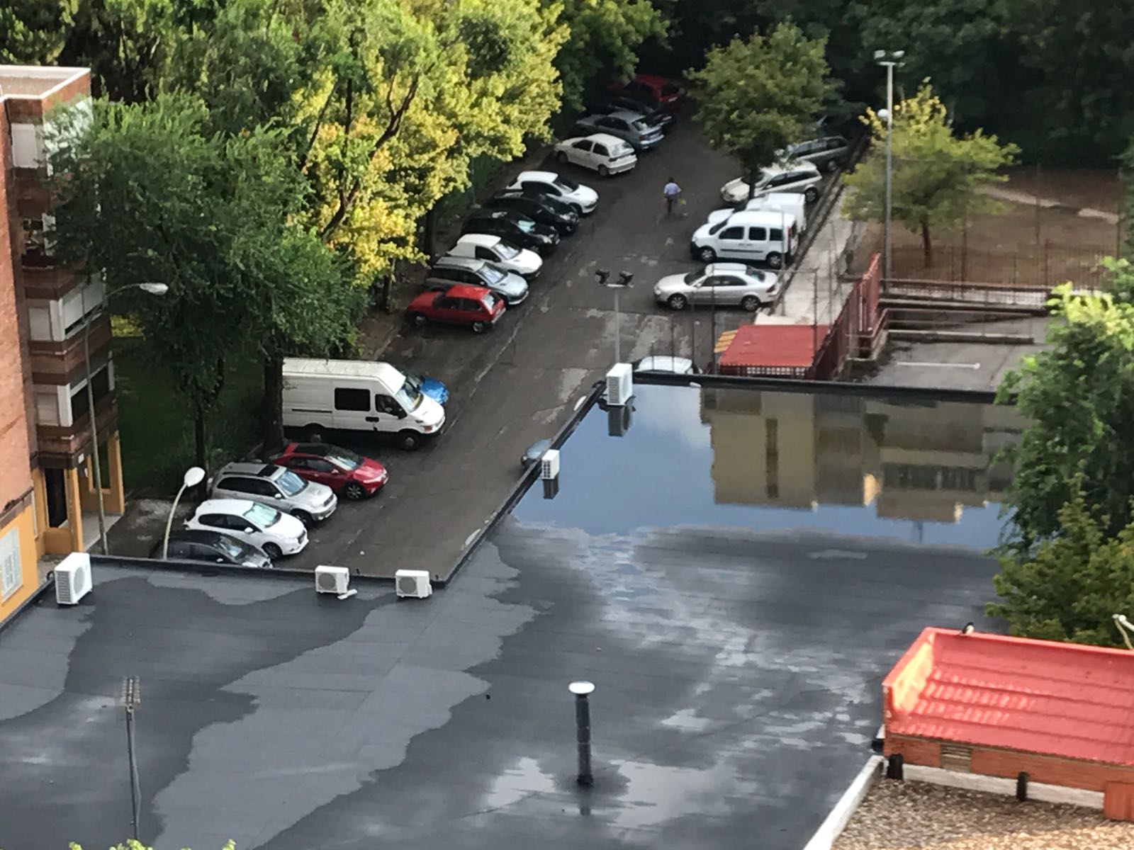 Mientras tanto, las fuertes lluvias caídas en los primeros días de julio en Madrid pueden haber causado daños en el Pedro de Alvarado, ya que se acumuló una importante cantidad de agua en el tejado, como se puede ver en la foto.