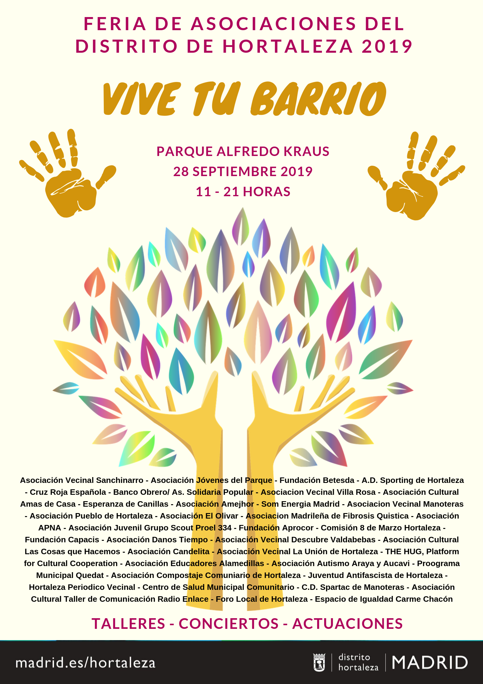 La cuarta edición de la Feria de Asociaciones de Hortaleza vuelve a marcar el cambio de estación y se celebra este sábado 28 de septiembre en el parque Alfredo Kraus, con un formato y una distribución similares a los que se han desarrollado en años anteriores.