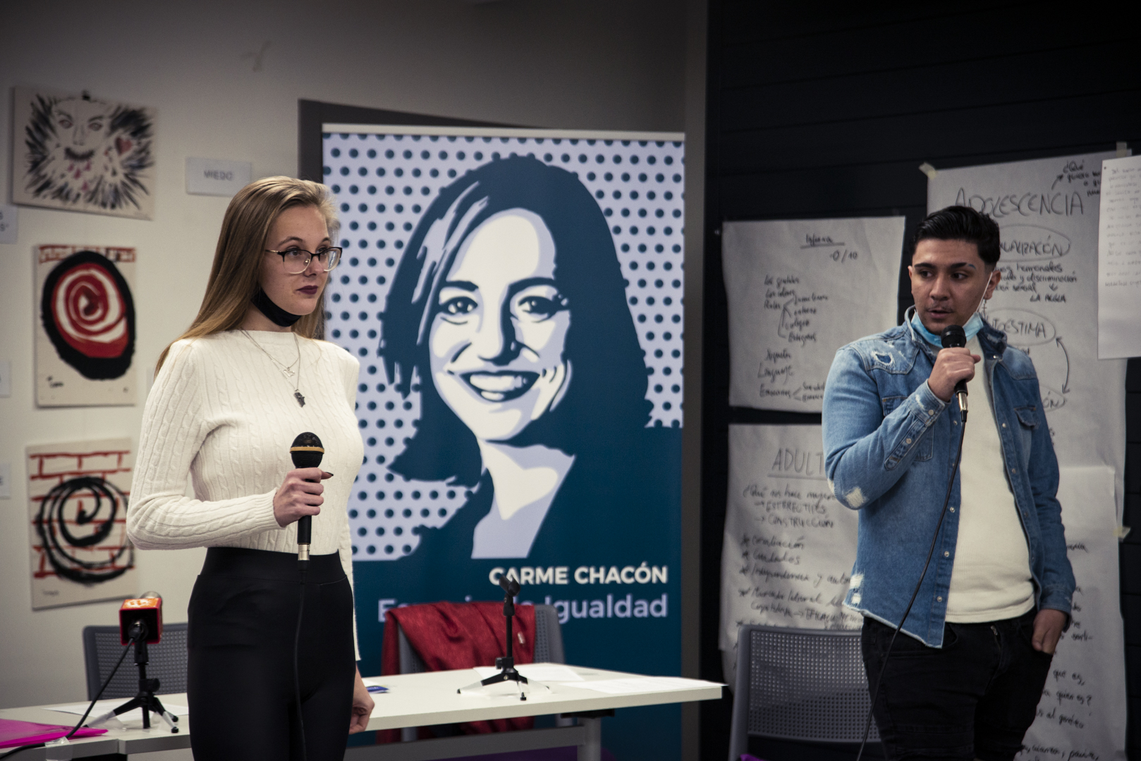 «Espero que este tipo de iniciativas sirvan para que las vecinas y vecinos más jóvenes del distrito conozcan el Espacio de Igualdad y quieran participar en él, enriqueciéndolo con su visión», afirmó Eva Velasco durante su intervención, con motivo de la alta asistencia a este primer día de la exposición.