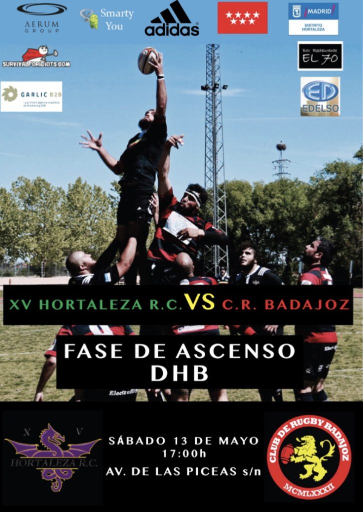 No sólo es un fin de semana importante para las chicas del XV Hortaleza. Los ‘dragones’, el equipo masculino, se juegan en casa el ascenso a la División de Honor B, la segunda categoría del rugby español. La cita es este sábado 13 de mayo, a las 17.30 horas, en el campo municipal de rugby de la avenida de las Piceas de Hortaleza.
