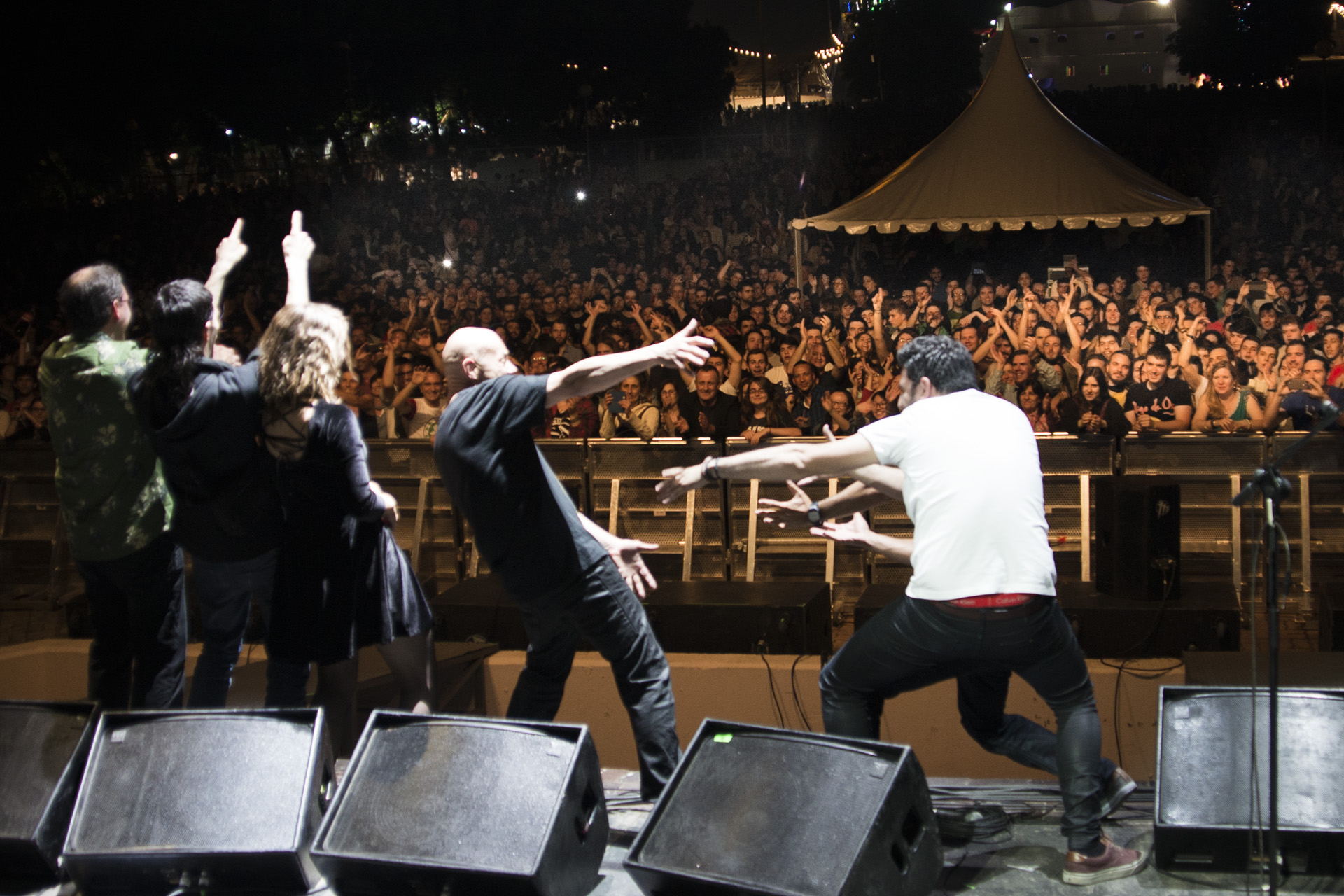 La veterana banda de rock Sínkope protagonizó la primera actuación destacadas de las Fiestas. Los extremeños acudían a presentar Gracias!!!, su último disco en directo grabado hace unos meses en Madrid. Y su cantante, Vito Íñiguez, se mostró agradecido durante todo el concierto, conocedor de que su presencia había sido solicitada por las asociaciones del barrio. Sin embargo, el agradecimiento se lo acabó dando el barrio después de que terminaran con una versión de ‘Hortaleza’ de Porretas, el himno oficioso del lugar, que enloqueció a los asistentes.
