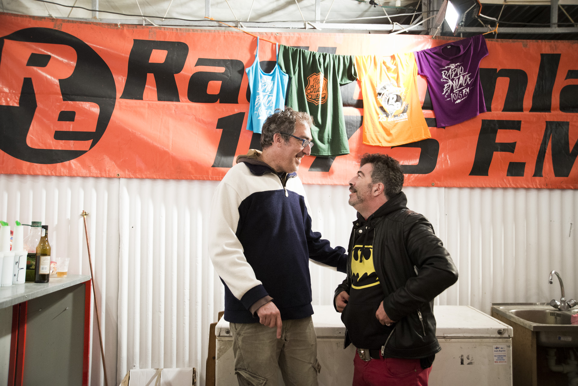 Las Fiestas de Hortaleza son ese lugar donde ves a gente que solo ves en las Fiestas de Hortaleza. Un punto de encuentro de compañeros de colegio, de pandillas al completo, donde se reúnen aquellos que salieron del barrio y vuelven siempre por primavera. El sitio donde las viejas amistades reflorecen. Como la de Javier Robles, la veterana voz de Radio Enlace, con el humorista Agustín Jiménez, que en 1989 compartieron las primeras emisiones de la radio comunitaria de Hortaleza.