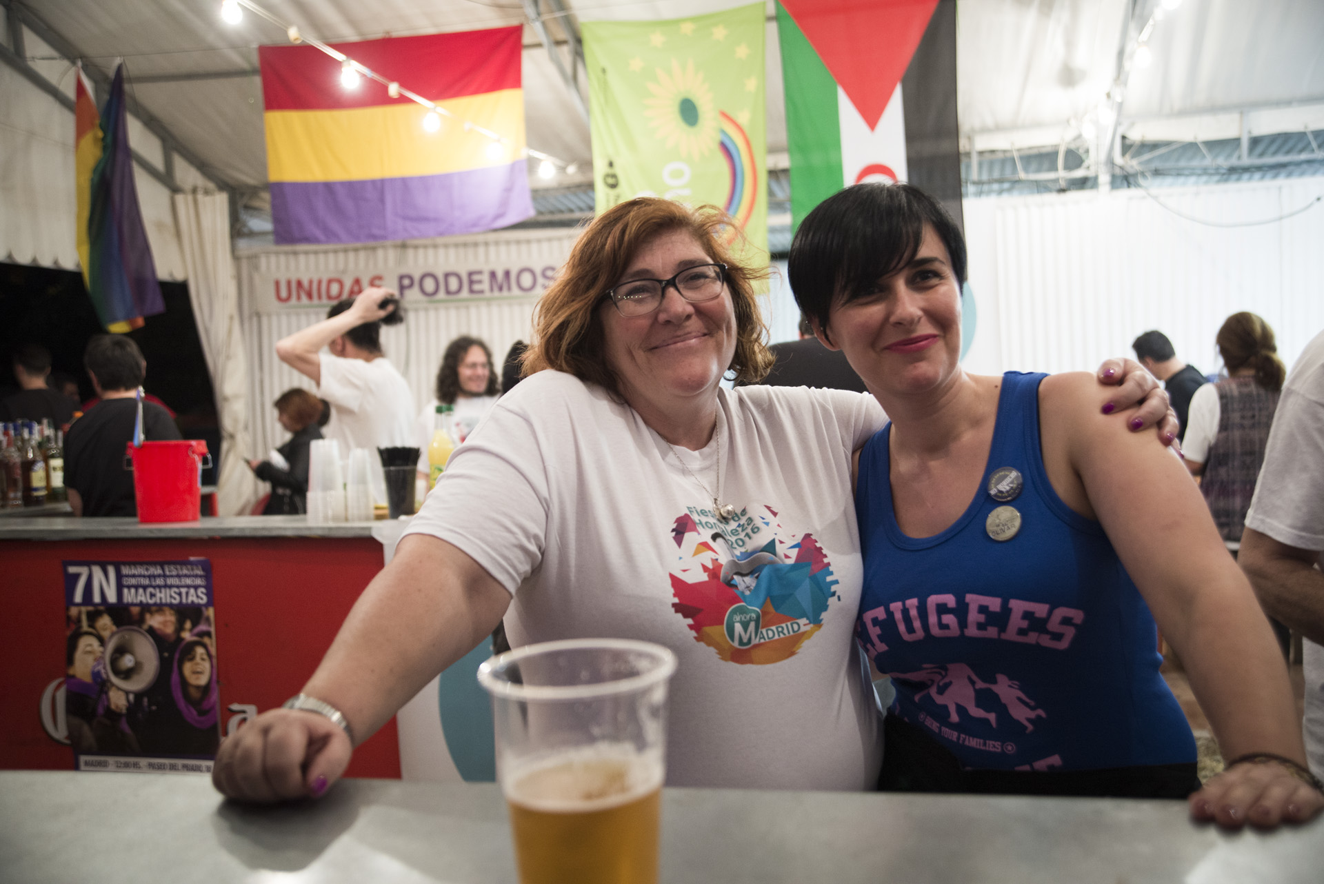 Si el primer viernes de fiestas te acercabas por la caseta de Ahora Madrid, que reemplazaba la tradicional de Izquierda Unida (aunque conservaba sus exquisitas tortillas de patatas), podías encontrarte con una concejala del Ayuntamiento de Madrid y presidenta del distrito como Yolanda Rodríguez poniendo minis de cerveza y bocadillos de panceta. Aquella misma noche, la portavoz municipal del PSOE, Purificación Causapié, también visitó la caseta de la agrupación socialista del distrito.
