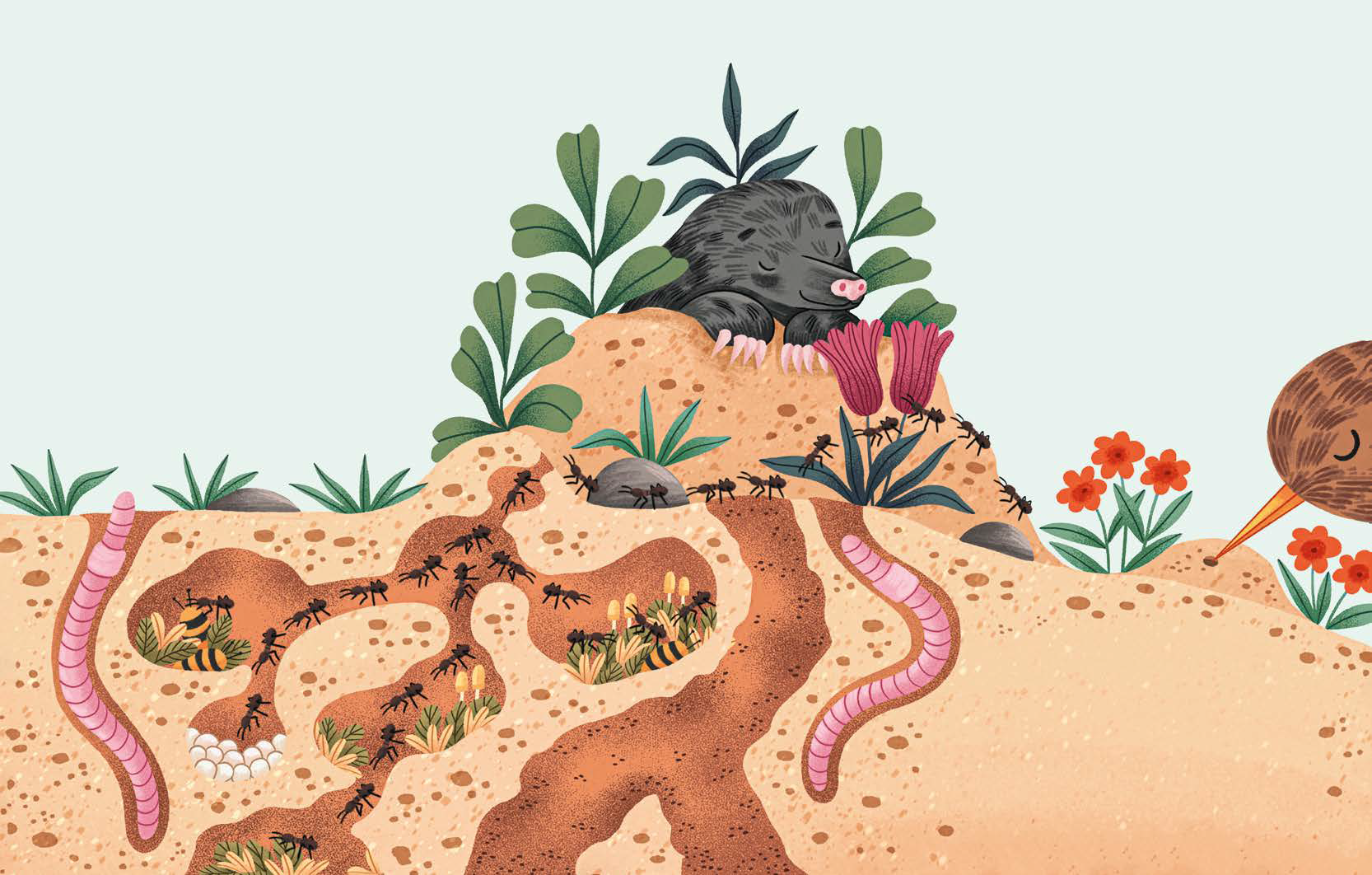 Desde que ha sido madre, para poder conciliar, Nereida ha dejado a un lado la labor investigadora y, como siempre le ha gustado la escritura, le pareció el mejor momento para combinar sus estudios sobre la naturaleza con la divulgación para los más pequeños. Empezó a colaborar con la revista Pantera, editada por Savanna Books (Valencia), y, finalmente surgió la oportunidad de publicar un libro ilustrado. “Siempre me han atraído los seres pequeños y las hormigas me llevan a la infancia. Quién no ha dedicado una tarde a seguir una hilera de hormigas obreras mientras transportan semillas hasta su hormiguero. Las hormigas tampoco son tan diferentes de los humanos… Tienen su propia sociedad, y se organizan para vivir juntas”.