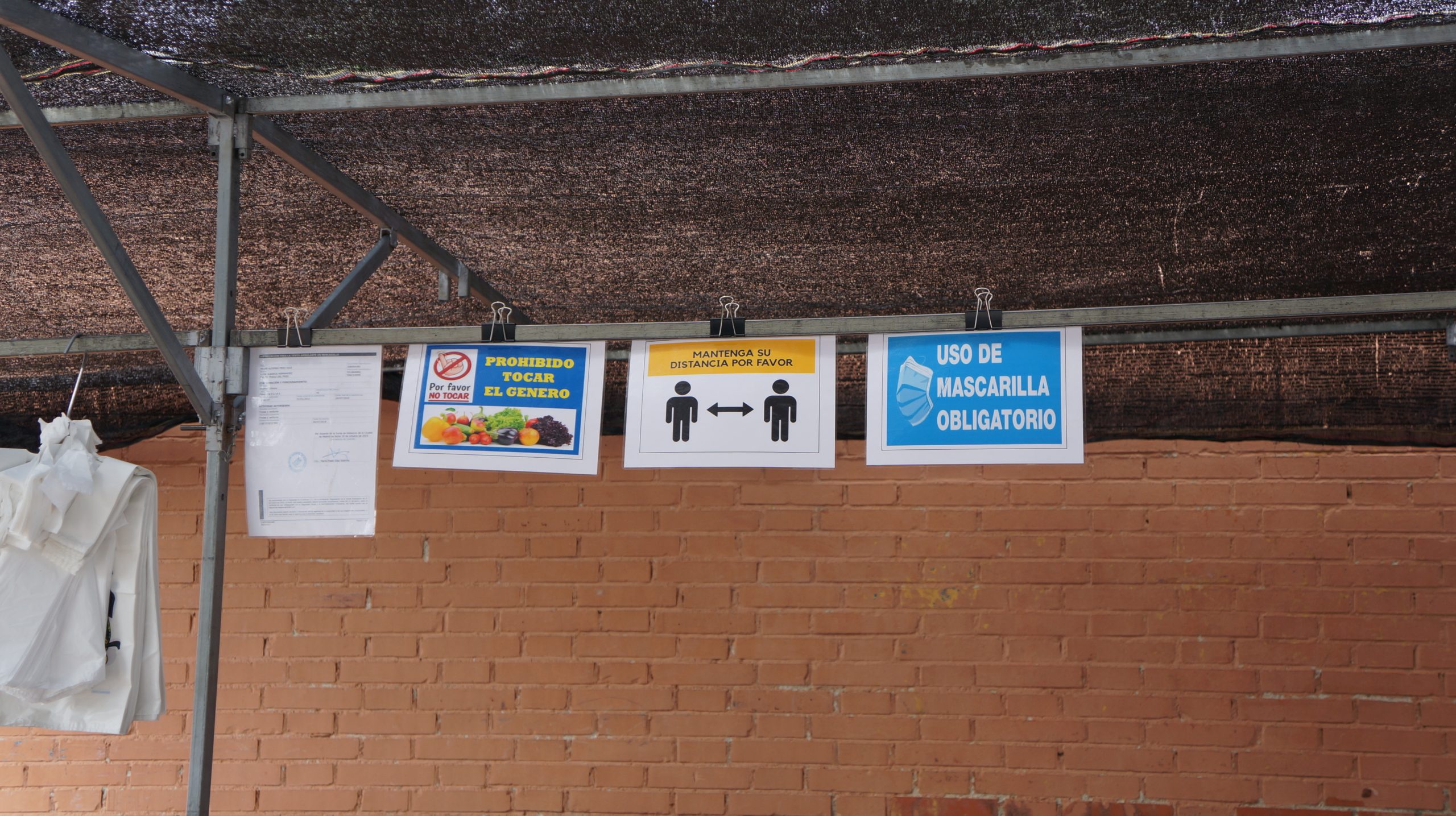 Carteles que recuerdan las medidas de seguridad instauradas en los mercadillos para evitar contagios. ÁNGEL SÁNCHEZ