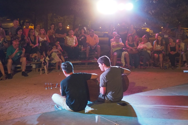 El reencuentro se produjo entre muchos de los vecinos y vecinas del barrio (y últimamente ya no tan del barrio) que volvían a verse las caras. Saludos, abrazos y anécdotas vacacionales surgían de los corrillos a la espera del comienzo de la actuación.