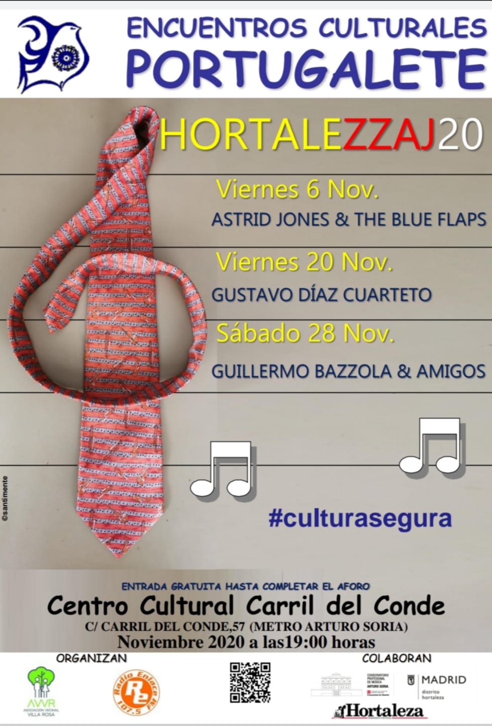 No obstante, gracias al tesón de Santiago Martínez (creador de los Encuentros Culturales Portugalete en 2004), podrá disfrutarse de tres conciertos dentro del ciclo Hortalezzaj20 durante este mes de noviembre, como es habitual, en el centro cultural Carril del Conde. Una selección de actuaciones que, como siempre, mostrará una visión ecléctica del jazz.