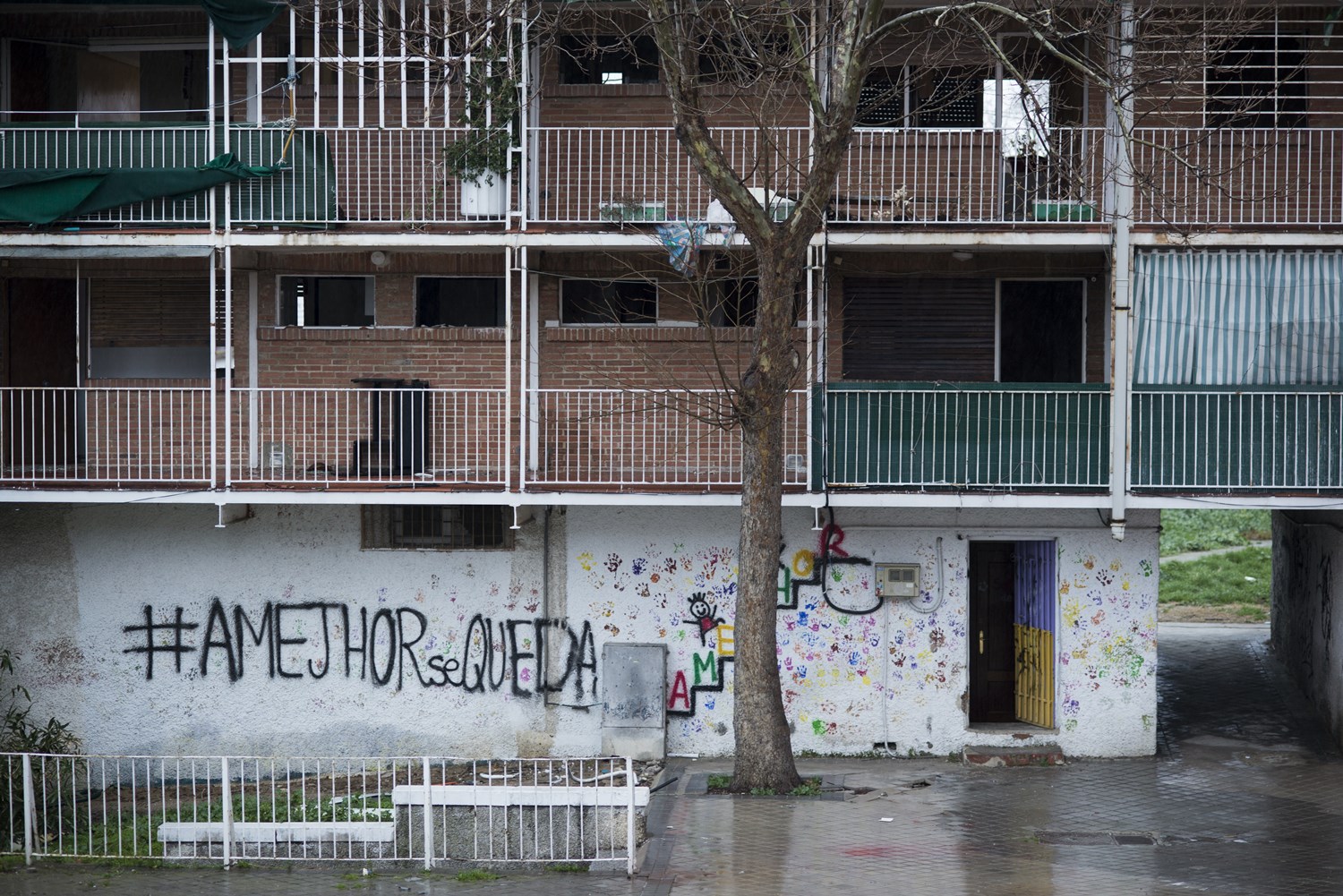 Una vez vacía, cada casa ha sido derribada por dentro para evitar que fuese okupada antes de que se tirase el bloque entero, como ha pasado en anteriores realojos. Por ello, algunas casas de los bloques derribados han tenido que mantenerse en pie a la espera de una orden judicial que dictamine el desalojo de los okupas, hecho que supone alargar aún más el proceso de rehabilitación de la zona, donde 50 años después de su construcción como una solución temporal, hay más de 300 familias esperando el prometido realojo.