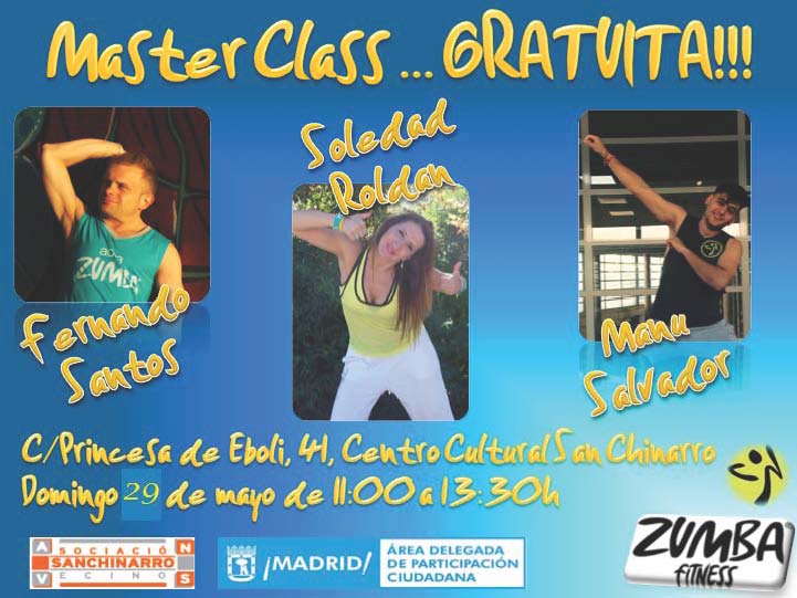 La Asociación de Vecinos de Sanchinarro convoca a un nuevo master class gratuito el domingo 29 de mayo de 11.00 a 13.30 h. El Centro Cultural Sanchinarro (Princesa de Éboli, 41) acoge la nueva sesión de Zumba organizada por la Asociación de Vecinos de Sanchinarro y el Área Delegada de Participación Ciudadana del Ayuntamiento de […]