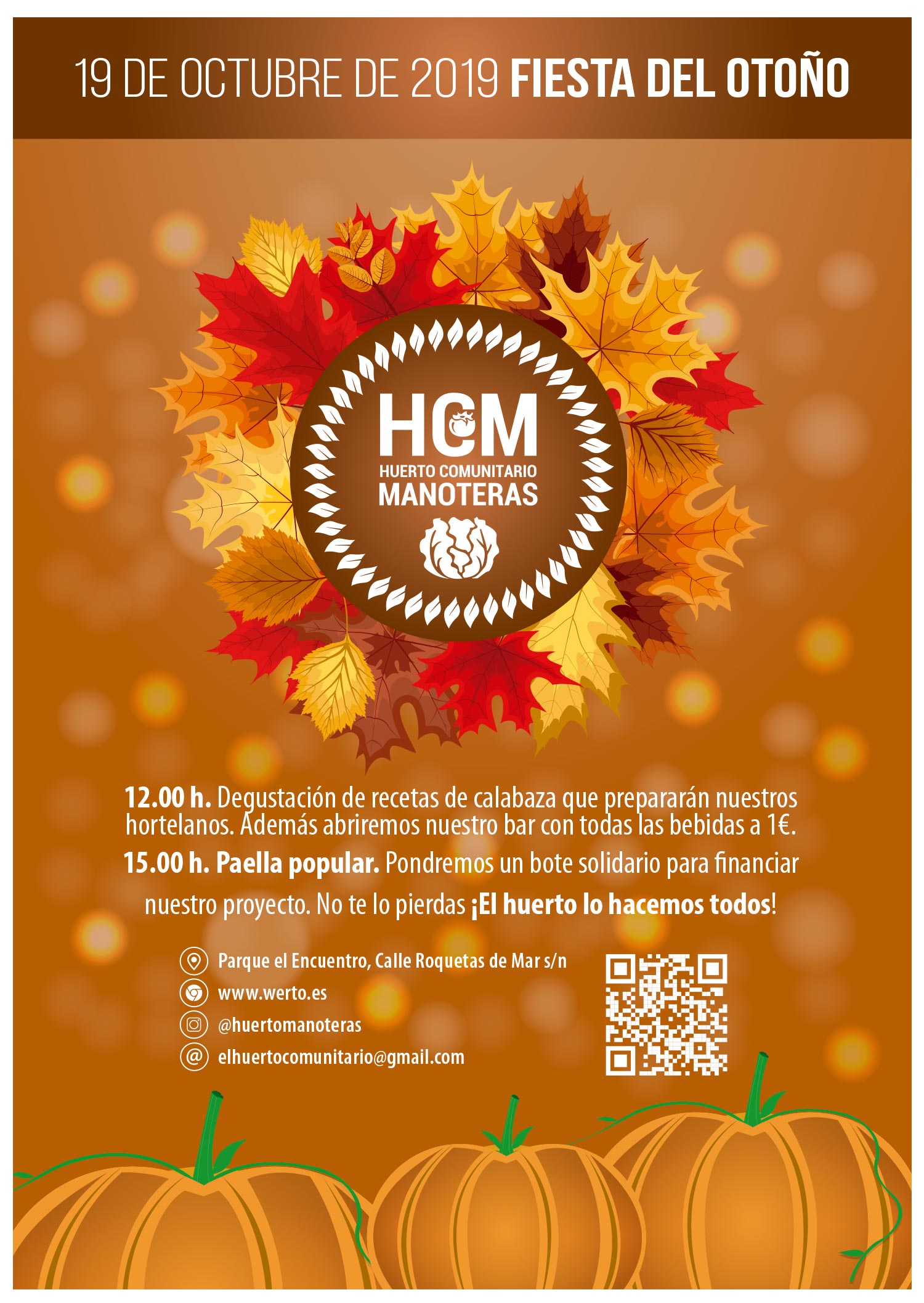 La asamblea del Huerto Comunitario de Manoteras invita a todo el vecindario a su Fiesta del Otoño, que se celebra este sábado 19 de octubre en la confluencia de Roquetas de Mar y Cuevas de Almanzora a partir del mediodía, comenzando con una degustación de recetas de calabaza preparadas por los hortelanos. A las 15.00 […]