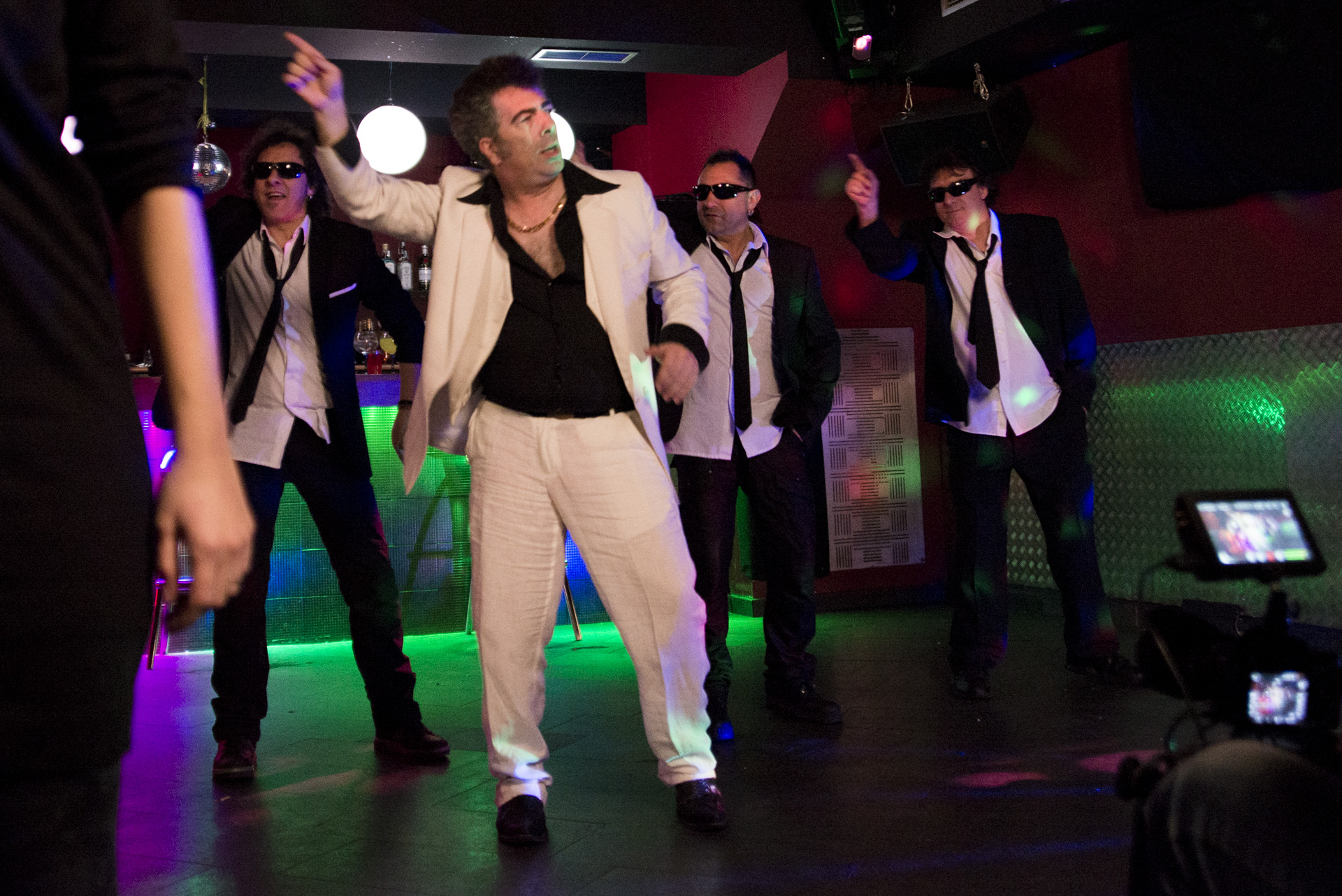 Lo que podría parecer el colofón de una noche gloriosa es el inicio de una larga jornada de trabajo. «Ya sabes que somos unos currantes», apunta Bode, guitarrista y cantante de Porretas, que le debe su apelativo a la época que regentaba la bodega La Cobela, en la calle Trefacio. Viste traje y corbata, como el resto de sus compañeros.