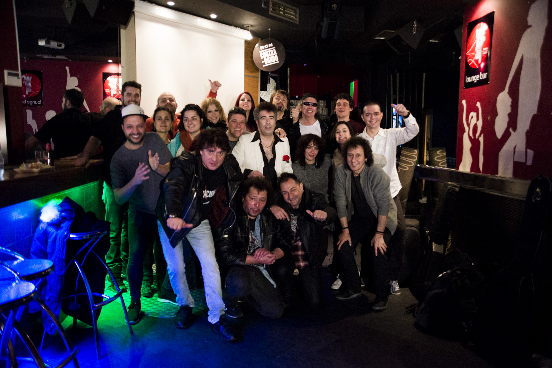 Porretas y Agustín Jiménez, junto a la gente que participó en el videoclip. Foto Sandra Blanco