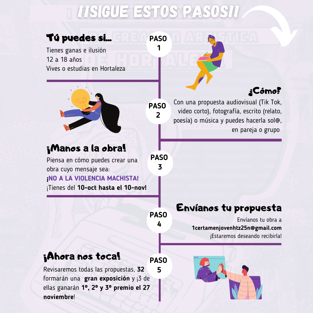 Además se puede participar en solitario, en parejas y en grupo. El objetivo, como explica Nieves Lara, es dar voz a «adolescentes del distrito porque estamos deseando escuchar todo lo que tengáis que decir sobre esta lacra».