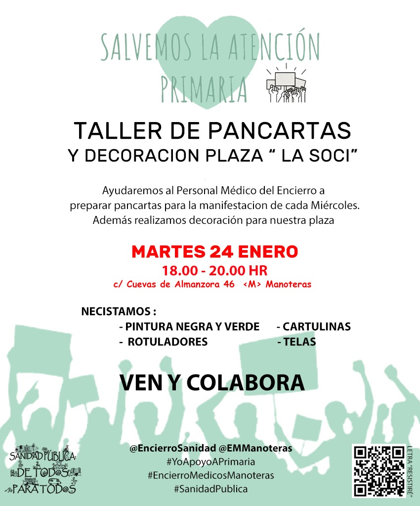 Este martes 24 de enero se realizará un taller de pancartas para llevarlas a la manifestación de este miércoles de Sagasta a Sol