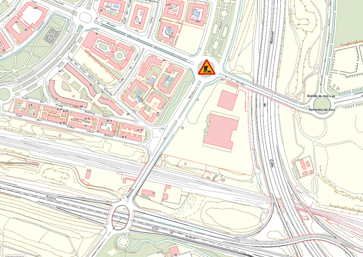 Debido a trabajos de mantenimiento urgente, se han cortado los accesos a la glorieta entre las calles Niceto Alcalá Zamora y Francisco Pi y Margall, así como cortes desde calle Príncipe Carlos, M-11, avenida Fuerzas Armadas y calle Julio Casares.