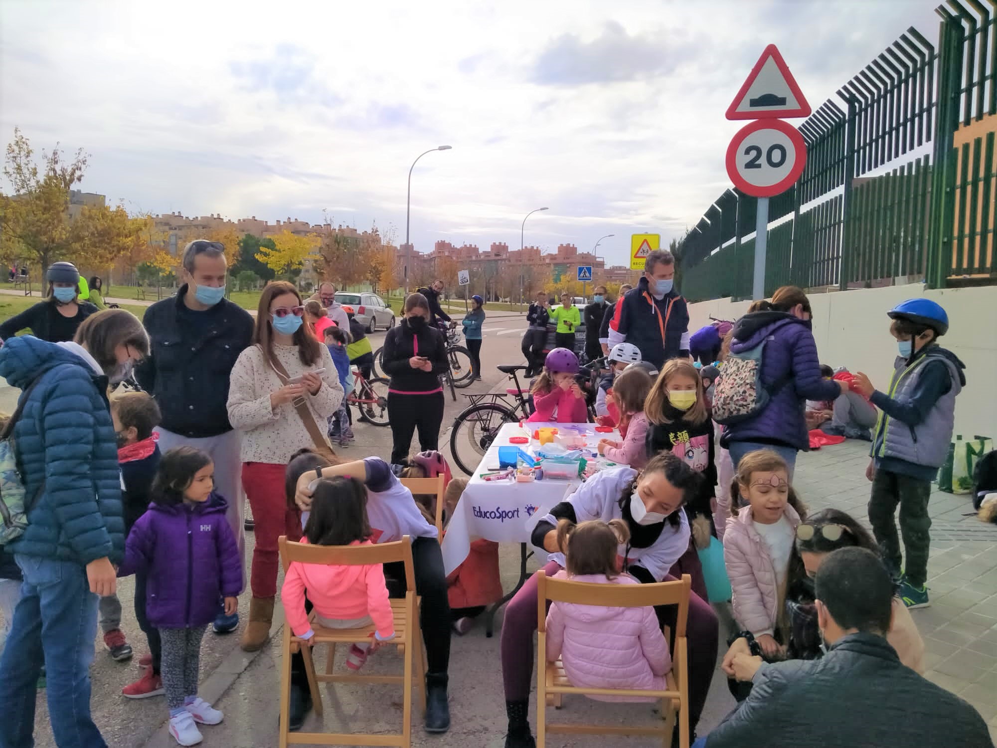 El pasado domingo 21 de noviembre, más de 300 personas –adultas, niños y niñas– se dieron cita en la entrada del colegio Adolfo Suárez para disfrutar reivindicando el uso de la bicicleta en el barrio de Sanchinarro.