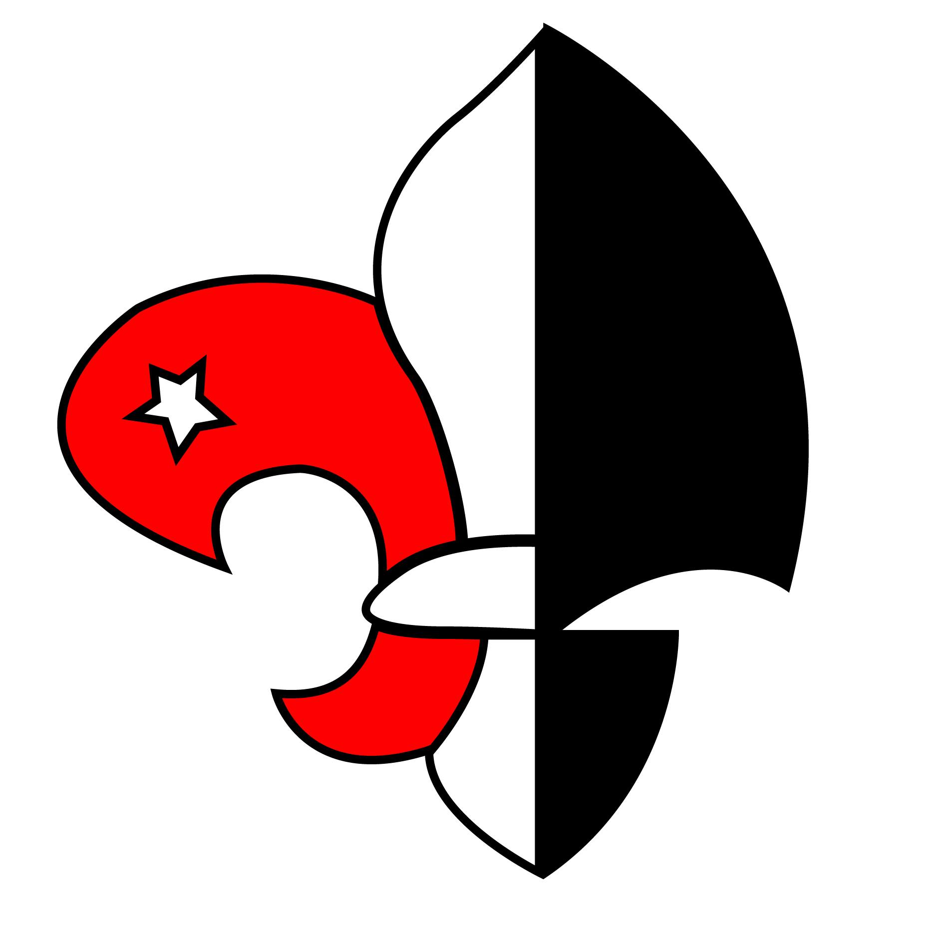Pañoleta de Scout Proel 334, cuyos colores son el rojo, por el faro; el blanco, por la estela que deja el barco al pasar, y el negro, por la noche.