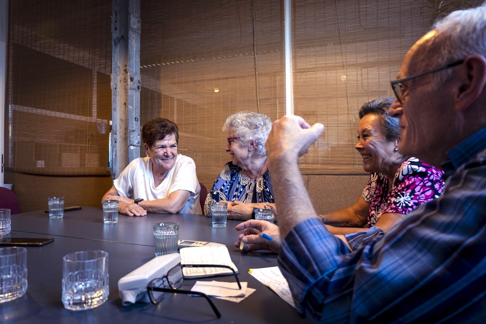 Las dos Mercedes, Ascensión y Vicente, intercambiando risas y experiencias en el Espacio Danos Tiempo. SANDRA BLANCO