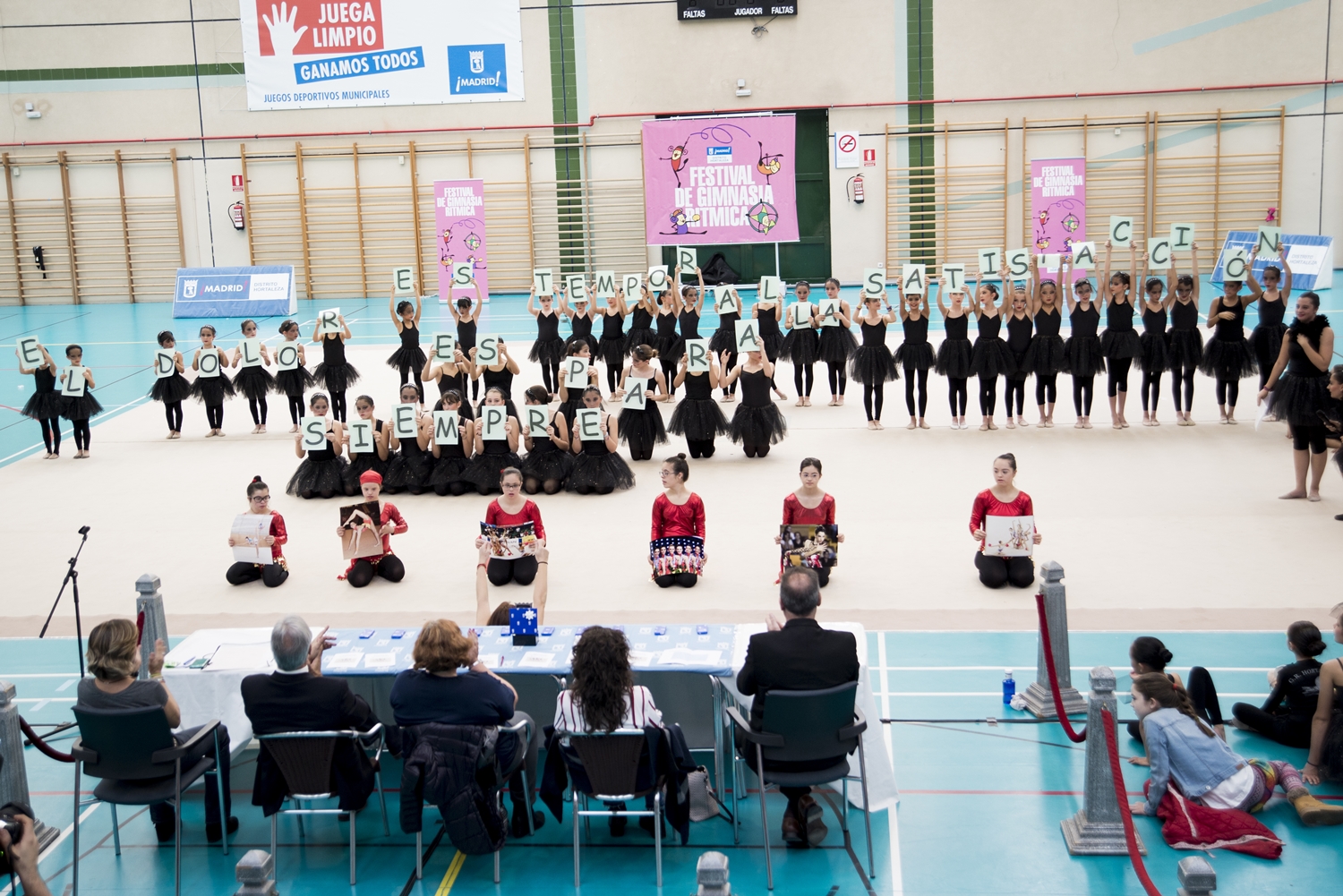 Tras el desfile de las participantes de las distintas escuelas, las jóvenes gimnastas posaron cada una con un cartel, formando la frase «El dolor es temporal, la satisfacción es para siempre«. Finalmente, el evento clausuró con la repartición de camisetas para todas las participantes de una edición multitudinaria.