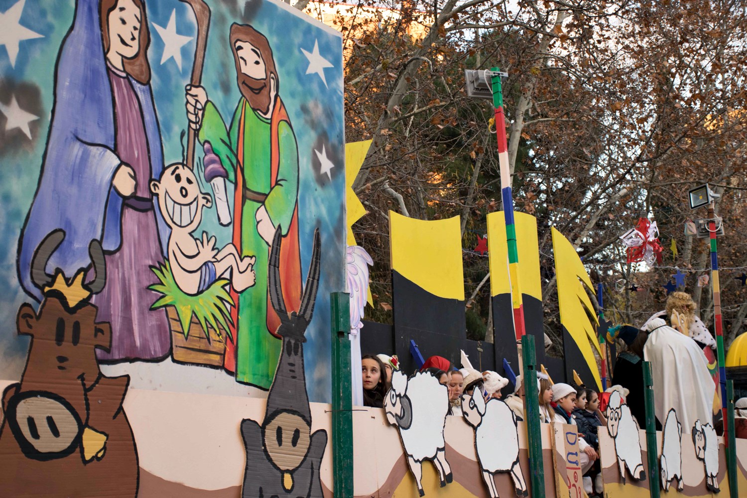 La carroza de la Parroquia Cristo Salvador fue un belén viviente. Foto Photoleza