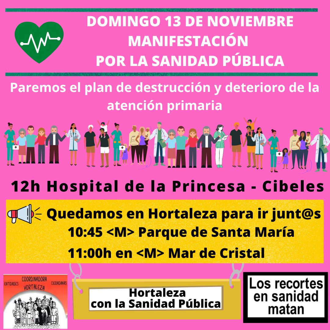 El vecindario de Hortaleza ha reclamado insistentemente la reapertura del servicio de urgencias en el distrito con manifestaciones y concentraciones durante los dos últimos años. Además, ha organizado charlas informativas junto a profesionales sanitarios para dar a conocer la situación en estos centros y los planes de la Comunidad de Madrid. Este domingo 13 de noviembre, se ha convocado a los vecinos y vecinas a acudir desde el barrio a la gran manifestación en defensa de la sanidad pública que desembocará al mediodía en Cibeles. La cita en Hortaleza es a las 11 horas en la estación de metro de Mar de Cristal para sumarse a la columna que partirá, sobre las 11.30 horas, desde el Hospital de La Princesa de Diego de León rumbo a Cibeles.