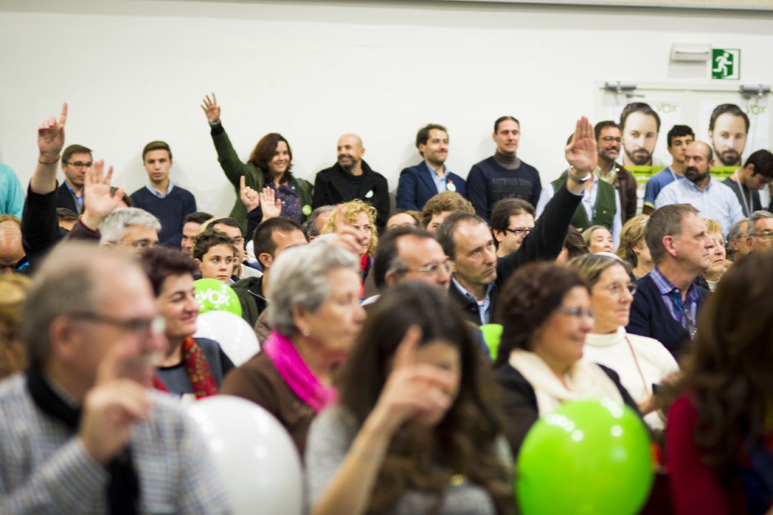 En los mítines de Vox no faltan muchos cocodrilos mordisqueando los pectorales, mucha mecha rubia, muchos señores mayores y, sobre todo, mucha España. Una bandera nacional escolta el atril, a los oradores no se les cae España de la boca, la recorren con unción, casi lamiéndola, de Covadonga a Gibraltar (español), y mientras tanto al público lo apelan al grito de “¡compatriotas!” con una naturalidad que sería la envidia de Artur Mas.