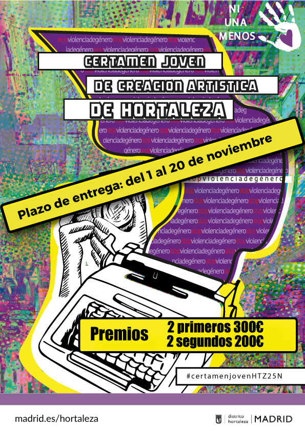 Con dos años de retraso y a “propuesta de la Mesa de Políticas Sociales del Consejo de Proximidad de Hortaleza y acuerdo plenario del distrito de Hortaleza de fecha 18 de julio de 2024”, según se indica en las bases publicadas el pasado 31 de octubre por la Unidad de Participación Ciudadana y Cooperación Público-Social de la Junta Municipal de Hortaleza, desde el pasado sábado 1 de noviembre hasta el próximo 20 de noviembre, queda abierto el plazo de presentación de obras para participar en la cuarta edición del Certamen Joven de Creación Artística de Hortaleza 25N con motivo del Día Internacional de la Eliminación de la Violencia Contra las Mujeres.